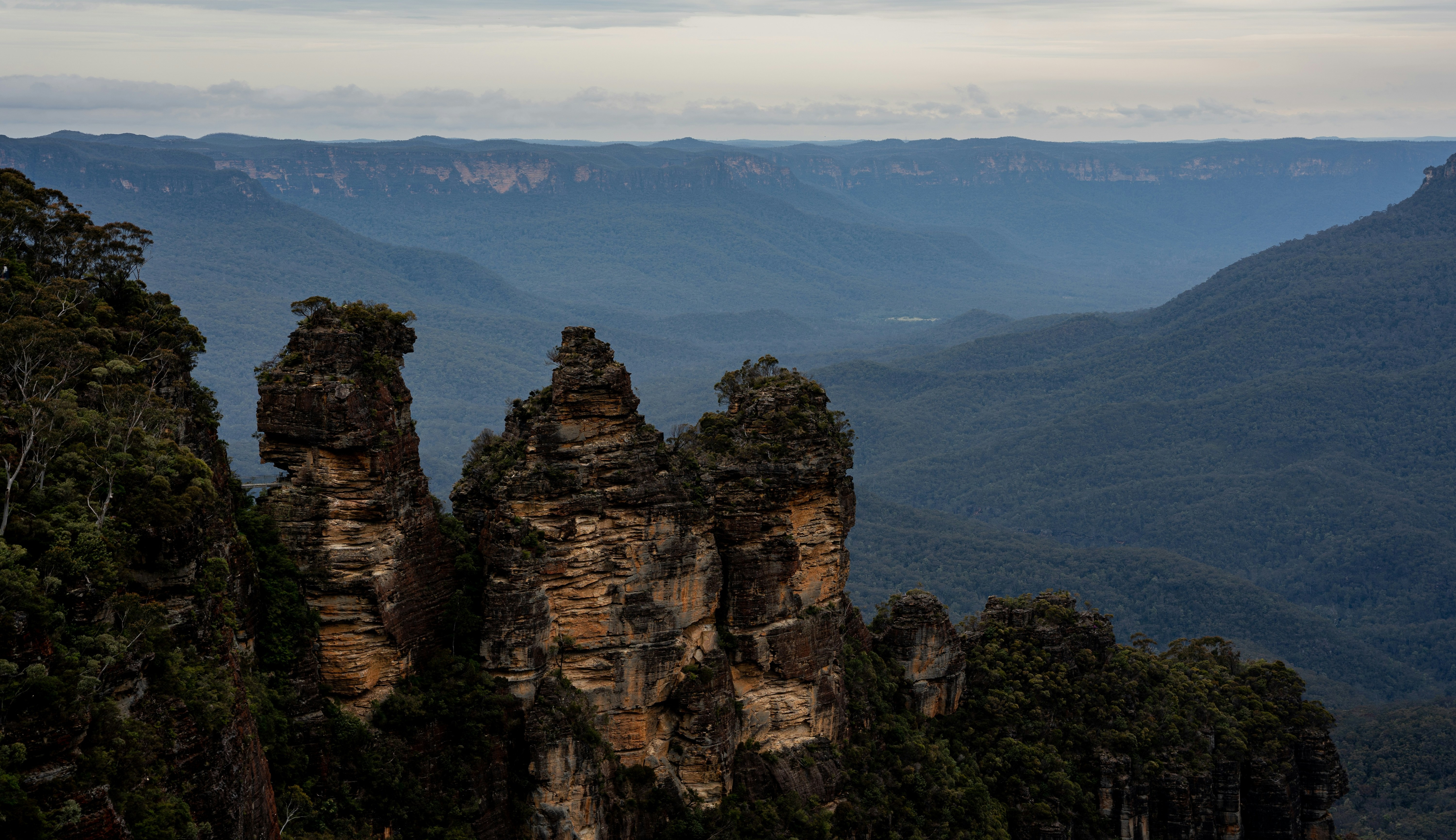 Nestled in the heart of the Blue Mountains, the Three Sisters Lookout offers a breathtaking and iconic Australian vista. Gaze upon the three majestic, weathered sandstone peaks rising dramatically from the Jamison Valley's lush depths. Steeped in Aboriginal Dreamtime legend, this world-famous lookout provides a stunning panorama of one of nature's most awe-inspiring creations, especially magnificent at sunrise and sunset. It's an essential stop for any visitor seeking the raw beauty and ancient stories of the Australian landscape.